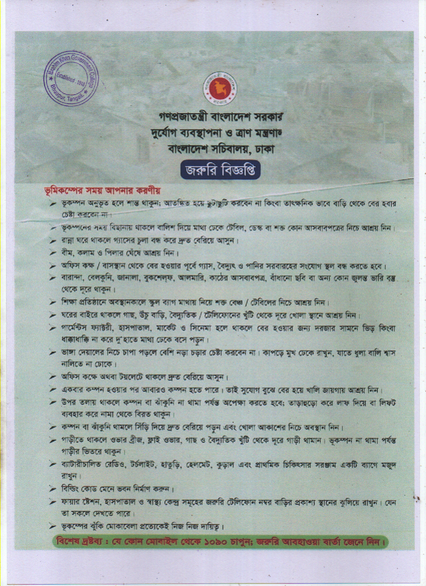 ইবরাহীম খাঁ সরকারি কলেজ শিক্ষার্থীদের সর্তককরণ বিজ্ঞপ্তি |